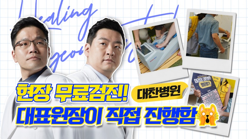 대찬영상 대찬의 모습과 치료법, 소개 등을 영상으로 모았습니다. 센터별 주요질환에 대한 치료법과 예방법 등을 영상으로 만나보실 수 있습니다. 대찬병원소개 대표원장의 무료진료요? 힐링연수페스티벌 현장 다녀왔습니다! 페이지 정보 작성자 관리자 댓글 0건 조회 87회 작성일 25-10-22 목록 대찬병원 대표원장님이 힐링연수페스티벌에 직접 참여해 시민분들을 대상으로 무료 건강검진을 진행했습니다!병원을 벗어나 더 가까운 곳에서 인천 시민분들을 만날 수 있었던 자리,더욱 뜻 깊었던 힐링연수페스티벌 현장!지금 확인해보세요! 목록